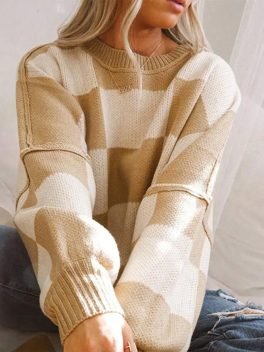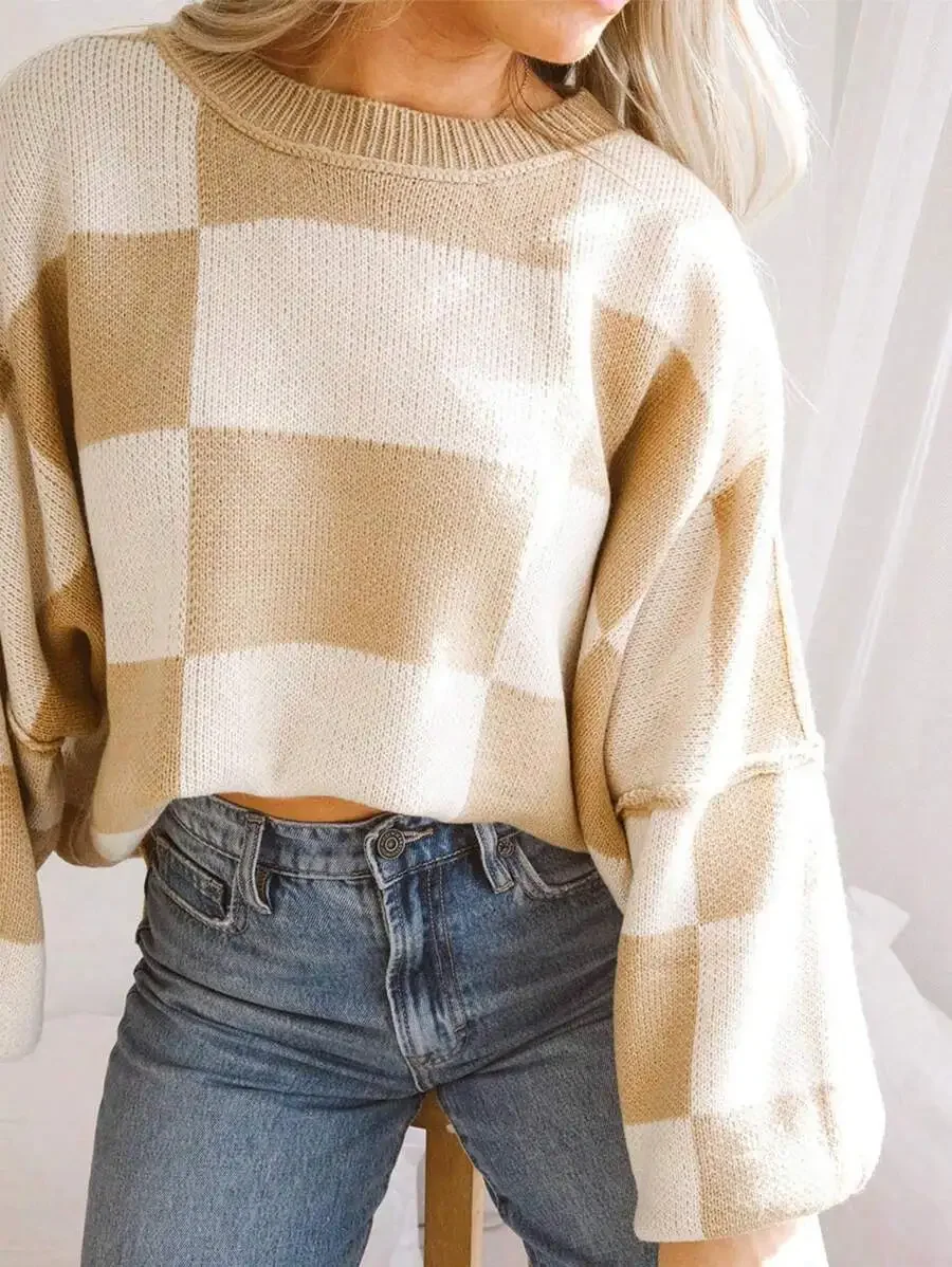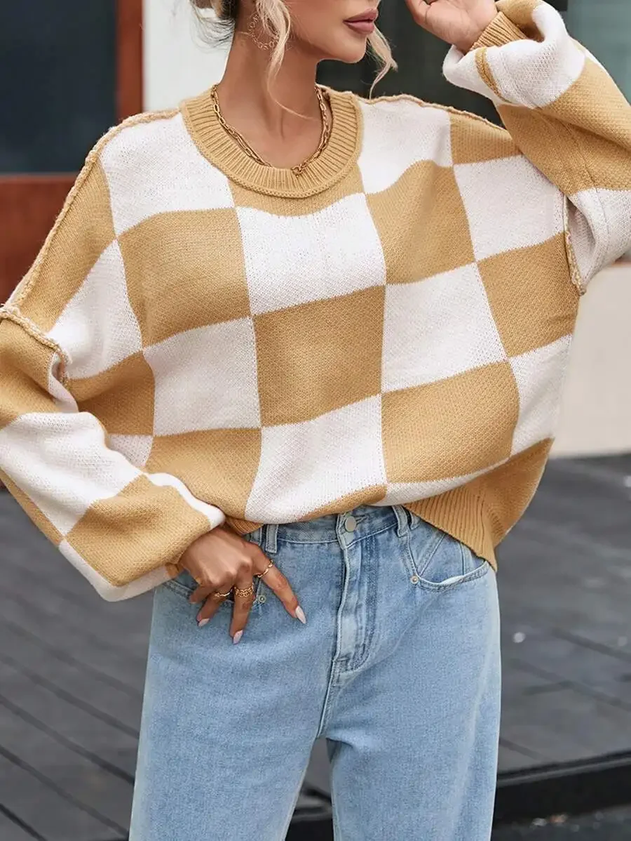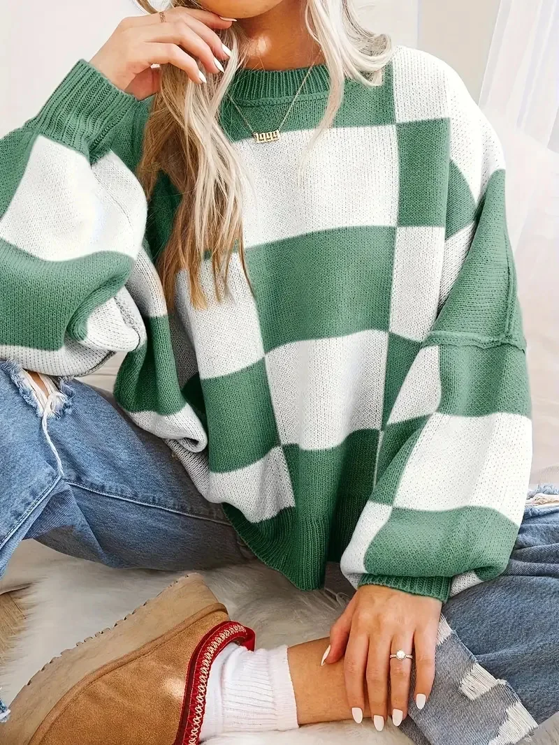 • Design & Style : Featuring a unique contrast color checkerboard pattern, this sweater adds a trendy touch to your autumn and winter wardrobe.